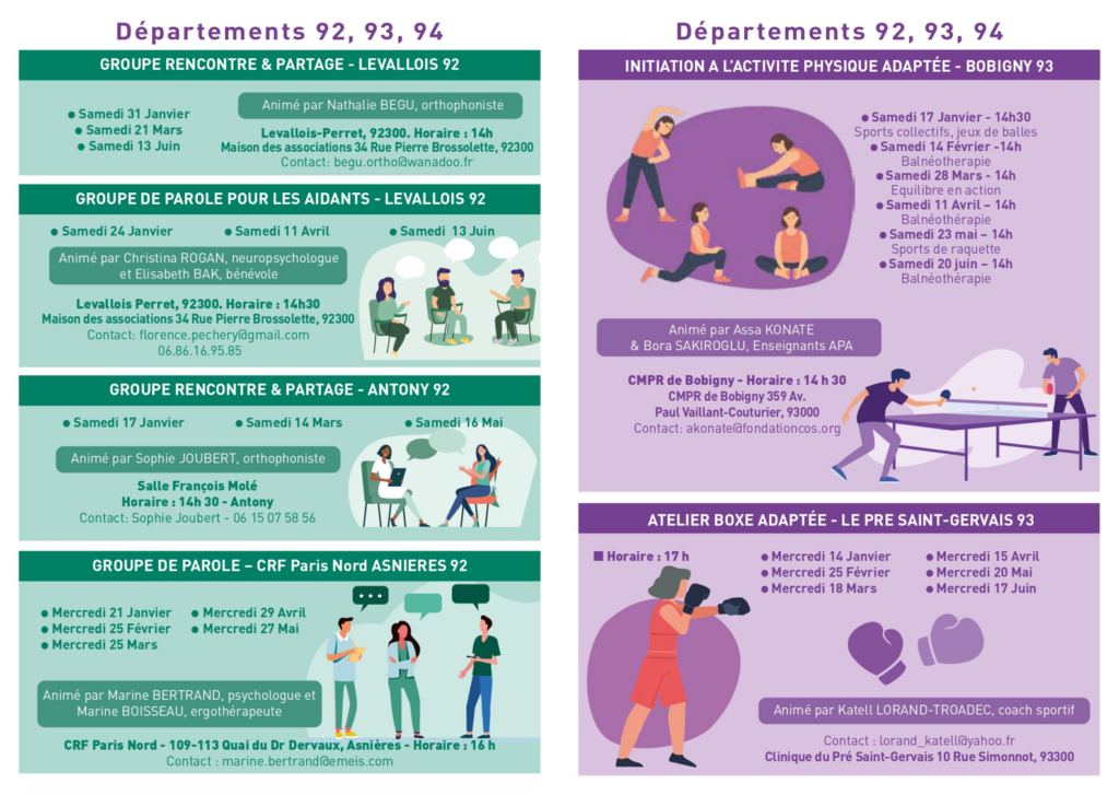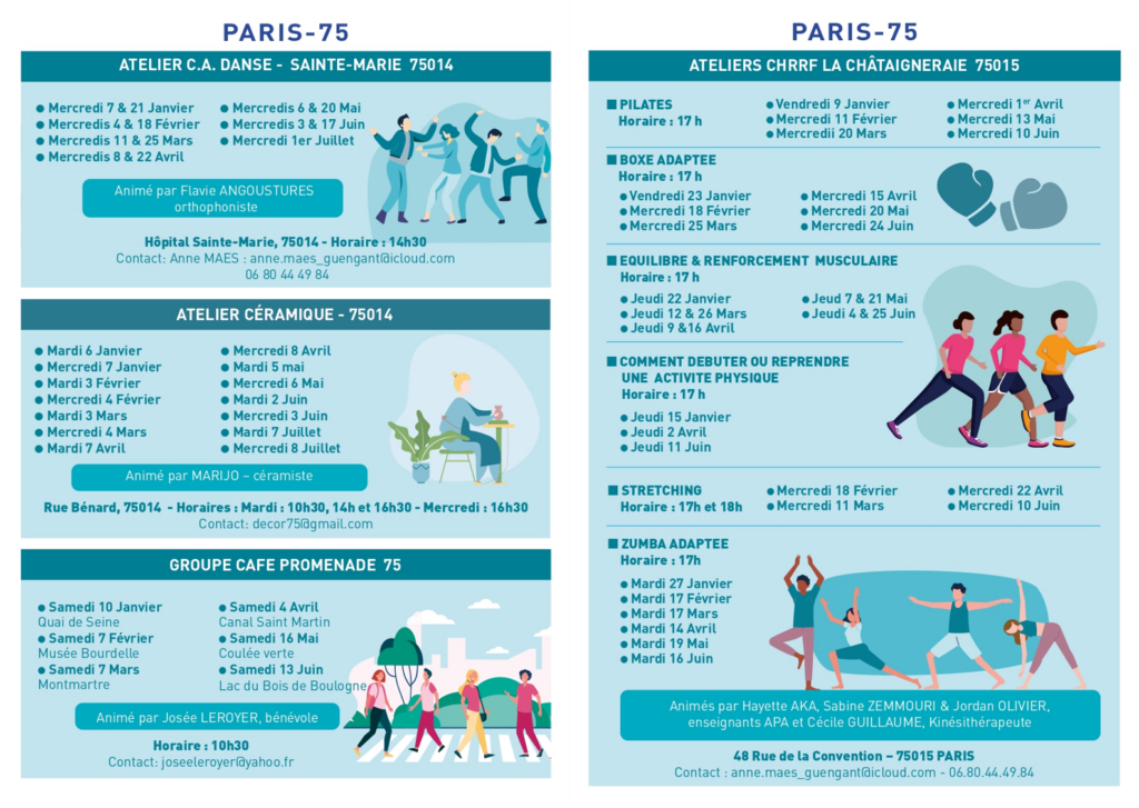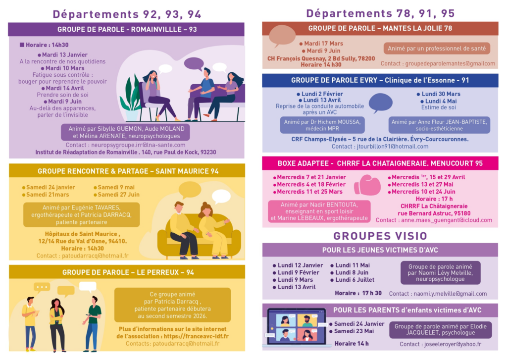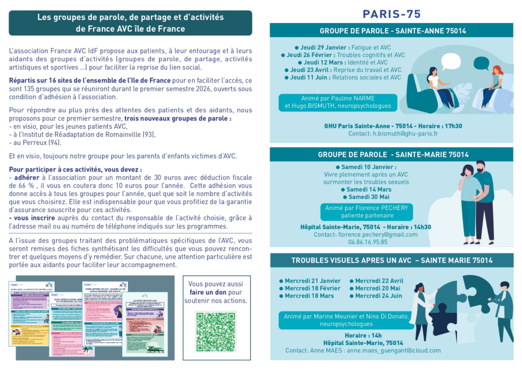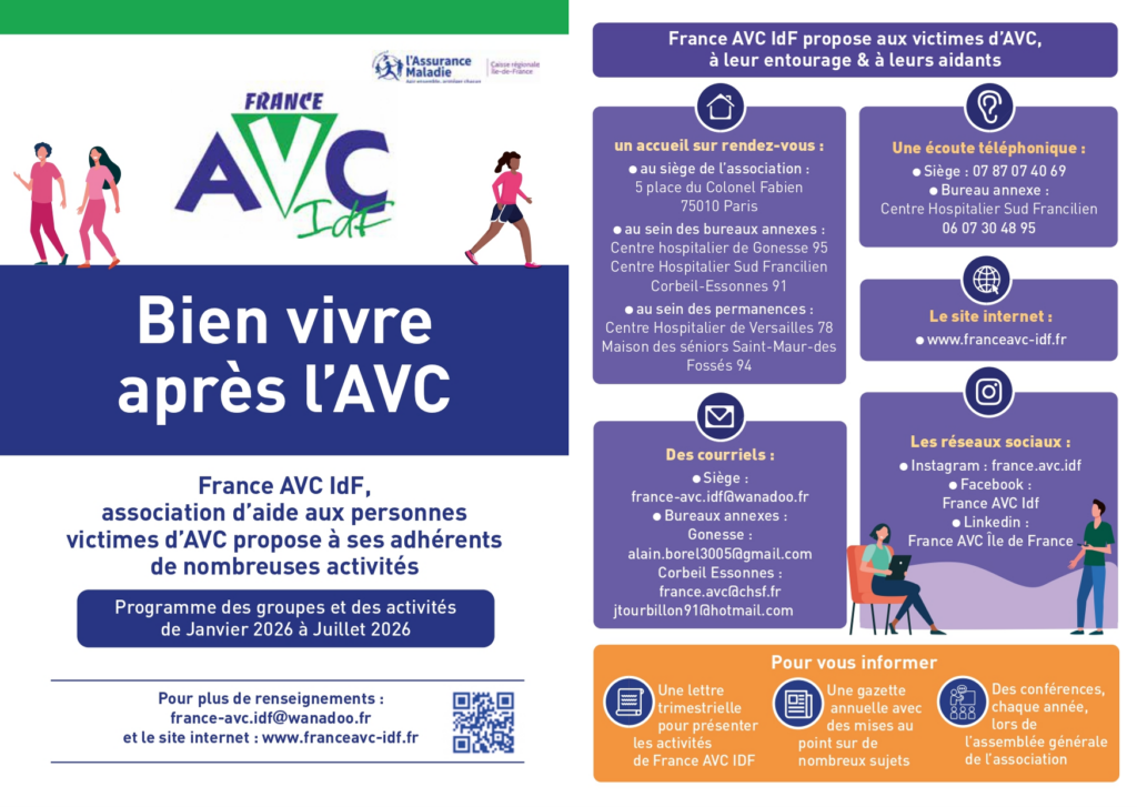 Calendrier des activités à venir Découvrez l'ensemble des activités proposées par France AVC IdF France AVC IdF, 20 décembre 2025 Le calendrier des activités de Janvier 2026 à Juillet 2026 est en ligne ! Programme-2026-sem-1Télécharger le programme pour l’imprimer